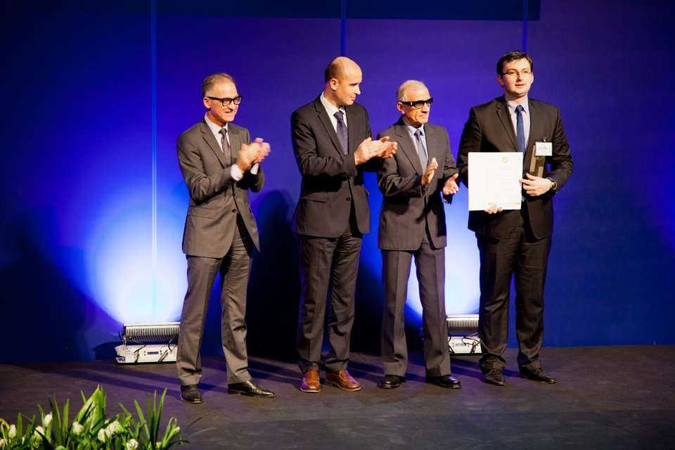 Gala wręczenia Złotych Medali MTP na targach POLEKO. Od lewej: dr Andrzej Byrt - prezes zarządu MTP, Marcin Korolec - Minister Środowiska, prof. dr hab. inż. Marek Sozańaki - wiceprzewodniczący sądu konkursowego oraz Wiesław Skiepko - właściciel firmy Z.Pźródło: Targi POLEKO i KOMTECHNIKA 2013