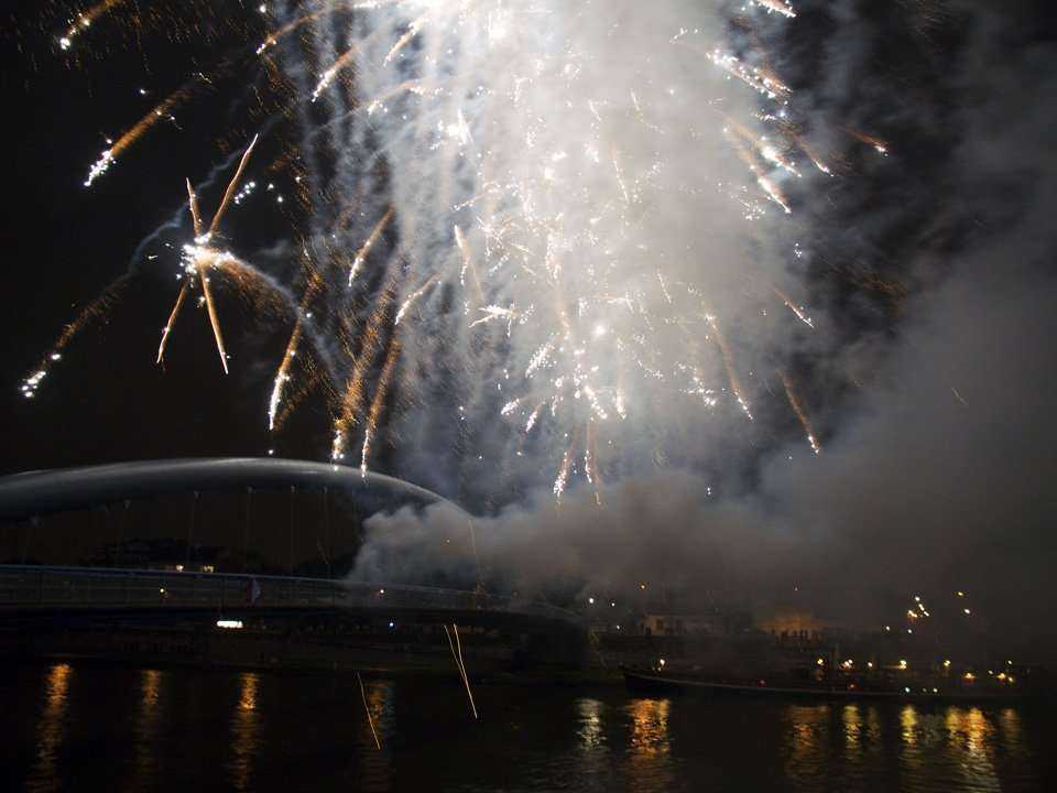 Uroczystości towarzyszył efektowny pokaz ogni sztucznych (Fot. Teresa Borzęcka, www.inzynieria.com)źródło: Otwarcie Kładki \"Bernatki\"