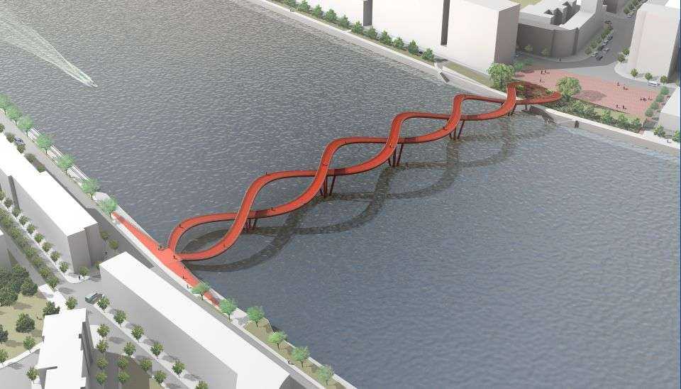 Wizualizacja z archiwum WXY architecture + urban designźródło: Serpentynowy most w chińskim mieście Xinjin