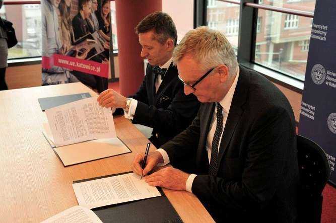 Podpisy złożyli prezes Sławomir Obidziński oraz rektor Robert Tomanek. Fot. MEźródło: Grupa Węglokoks ma nowego partnera