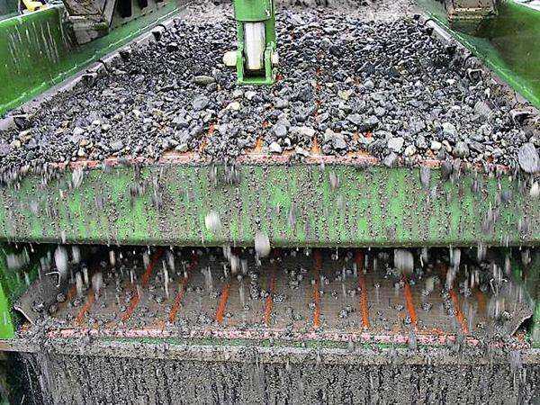 Fot. 1. Skruszona skała znajdująca się na wstępnym sicie wibracyjnym instalacji do separacji fazźródło: Bazowe Raporty Geotechniczne