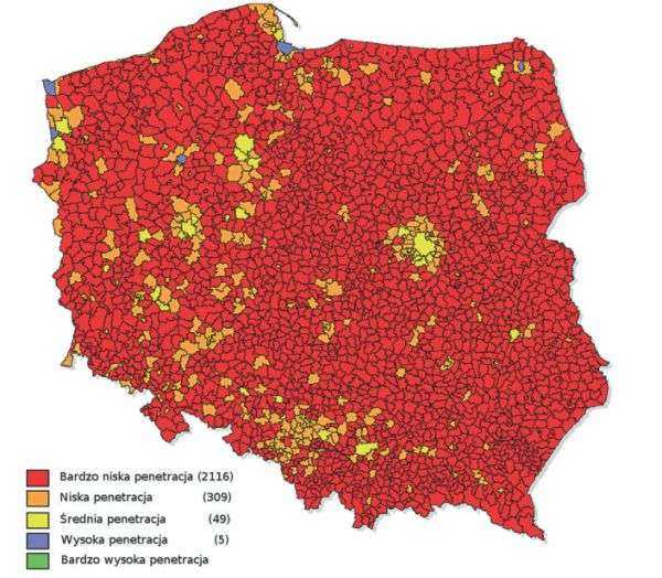 Rys. 1. | Nasycenie usługami dostępu do Internetu niezależnie od jego przepływności