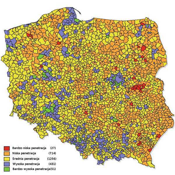 Nasycenie usługami dostępu do Internetu o wyższych