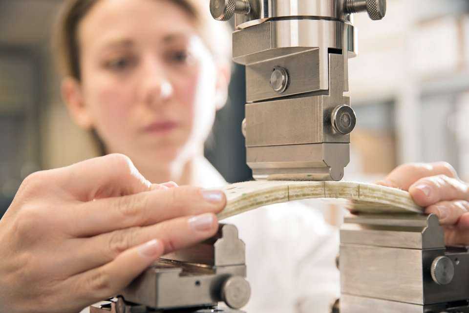 FOT. 1. Trzypunktowa próba zginania wycinka rękawa