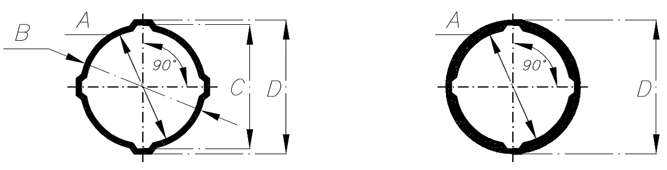 RYS. 1. Przekrój rury inklinometrycznej: wykonanej z aluminium (lewy rys.), wykonanej z ABS (prawy rys.)