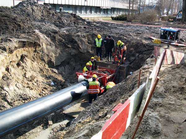 Fot. 1. Renowacja Wodociągu Dąbrowa w Łodzi metodą swageliningu za pomocą rur PEHD WehoPipe