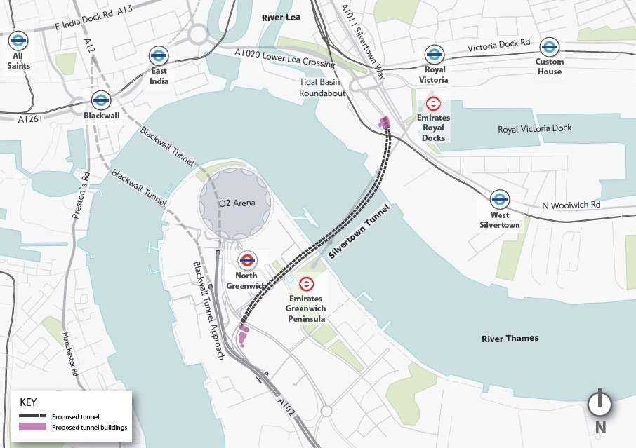 Lokalizacja tunelu Silvertown w Londynie. Źródło: TfL