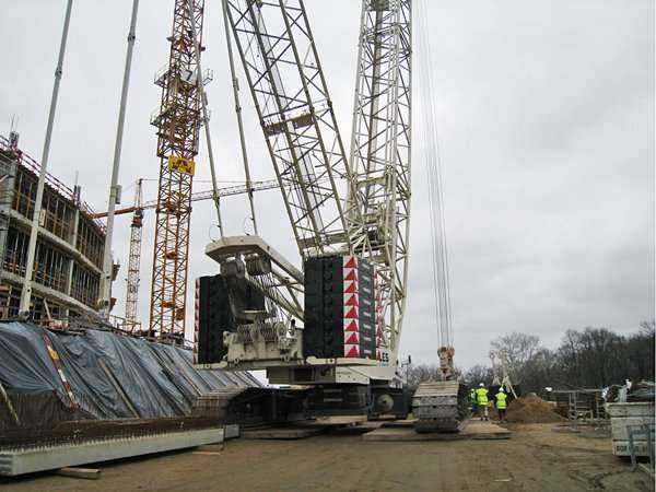 Fot. 1. | Żuraw gąsienicowy o udźwigu 500 t na budowie Stadionu Narodowego
