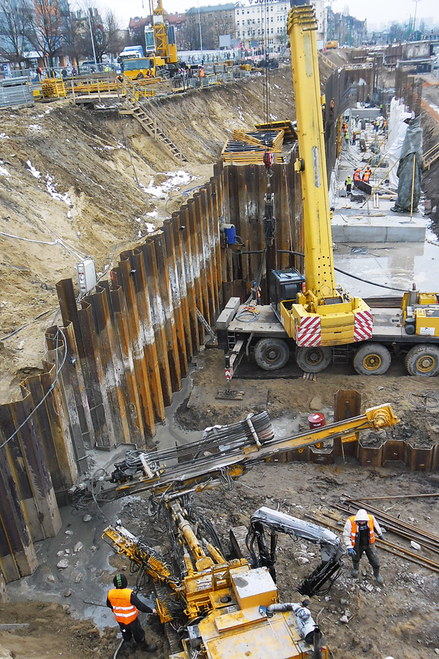 Fot. 1. Kotwienie grodzic stalowych