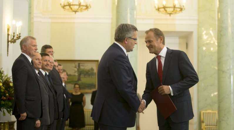 Prezydent Bronisław Komorowski przyjmuje dymisję rządu Donalda Tuska. Fot. KPRM