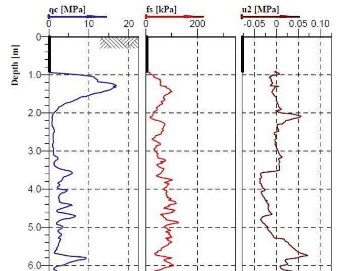 RYS. 1. Przykładowy pomiar sondowania CPTU