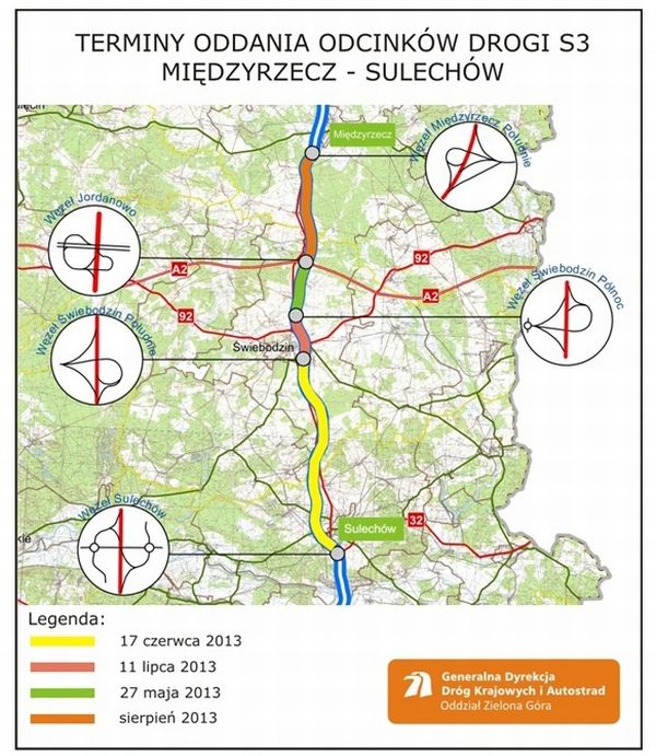 Mapa z archiwum GDDKiA o. Zielona Góra