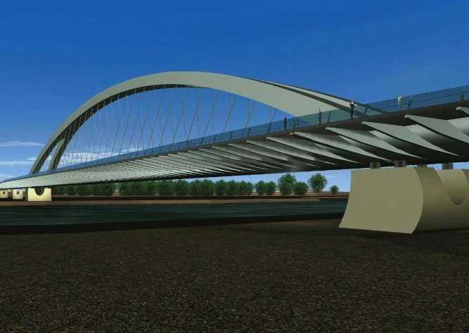 Wizualizacja mostu przez Wisłę w ciagu Trasy Krasińskiego. Źródło: ZMID